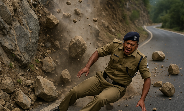 तीनधारा में पहाड़ी से गिरे पत्थर की चपेट में आने से पुलिस जवान की मौत